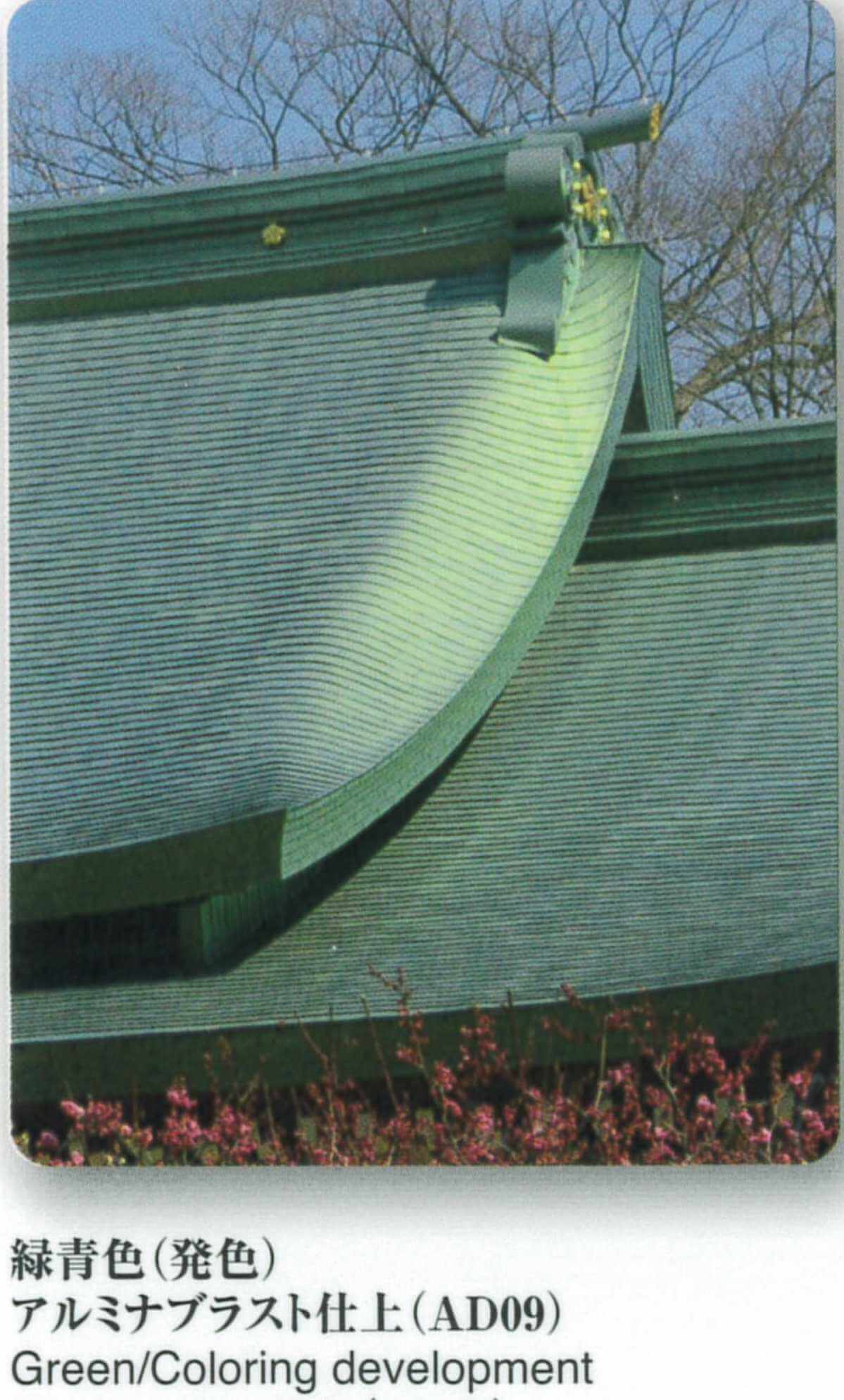 純鈦金屬板除了具有耐酸雨、耐腐蝕等耐久性能之外,還有重量輕、強度與鋼鐵相同等特性。設計師如運用在建築外裝修或內裝修更可以選擇多樣化的顏色,除了白、黑、紅之外,各種漸層顏色都能表現。這些顏色並不是靠表面塗裝,而是採用所謂的陽極氧化法發色,也就是在電解液中施加電壓,使陽極側的鈦板表面形成氧化皮膜的方法。所以,以陽極氧化發色製造的純鈦金屬建材是絕對不會腐蝕的。